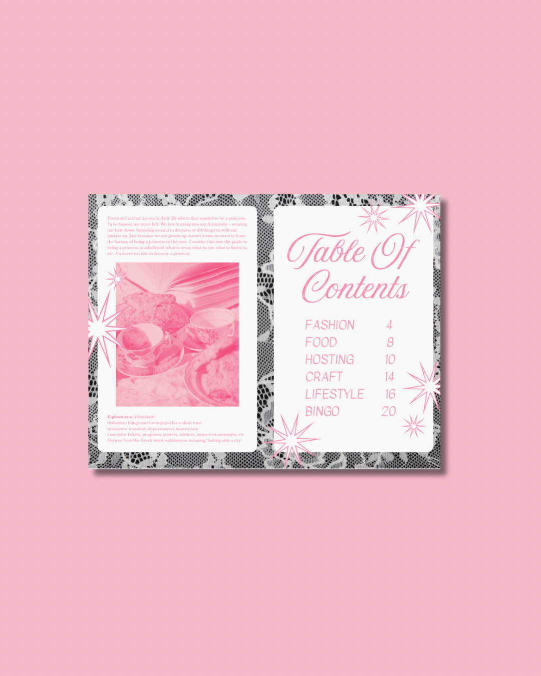 EFFEMERA IS INTERACTIVE. YOU’LL GET CLASSIC COLUMNS, ARTSY PICTURES, AND IMPECCABLE DESIGN, BUT OUR ZINE OFFERS MORE THAN SOMETHING YOU’LL READ AND FORGET ABOUT. EVERY ISSUE OF EFFEMERA INCLUDES A RECIPE NOTECARD, A BINGO CARD, A CONVERSATION QUESTION, AND AN EPHEMERA COLLAGE PAGE. WE INTEND YOU TO CUT THESE THINGS OUT, GET CREATIVE, AND USE THEM! COLLECT RECIPES; START A JAR OF DINNER CONVERSATION QUESTIONS; WORK TOWARDS A BINGO; CUT OUT THE COLLAGE PHOTOS AND COLLECT YOUR OWN EPHEMERA.